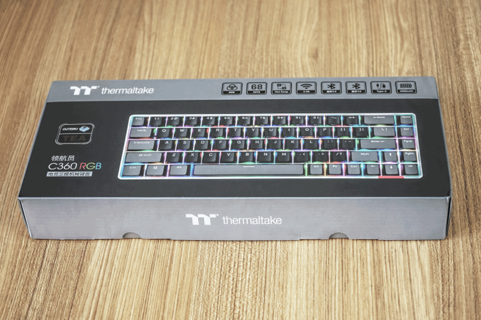 先是TT家的領航員C360 RGB鍵盤,開箱動圖先來一張,68鍵的mini身板非常緊湊,不僅便攜還擁有三模連線和雙色注塑PBT鍵帽,而且2000mAh的電池加持更是使得續航得以保證。