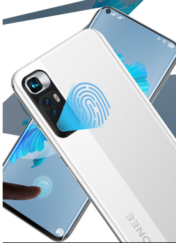手機的正面採用的是左上角的四曲面打孔屏,渲染圖看起來顏值很高,邊框很窄。但是實際表現就不知道了。背部使用的是矩陣三攝。在三攝的下方有一個指紋識別用來湊數,不知道這個位置,使用者解鎖起來是否方便。