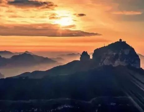 爐峰山,俗稱小金鼎,頂峰形狀極似茶壺,遠看山頂像火爐燒茶而得名。傳說是太上老君醉酒後踢丹爐落地形成。遠望層巒疊嶂,近觀如刀劈斧砍,十分壯觀!