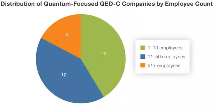 圖8顯示了29家專注於量子的QED-C公司的員工數量分佈。這些公司大多都相當小,只有五家公司的員工超過50人。