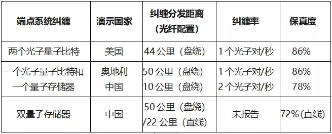 表28顯示了遠端量子網路的技術現狀。目前,所有量子網路原型都透過光纖電纜傳輸量子位元(以光子的形式),儘管這不是物理要求。