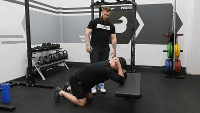 1. 胸椎擴充套件(靜態拉伸):跪在平板凳約半米處,雙手放在背部,肘部支撐在平板凳邊緣,頭向下探至平板凳水平面之下,充分伸展上背部,保持20-30秒。