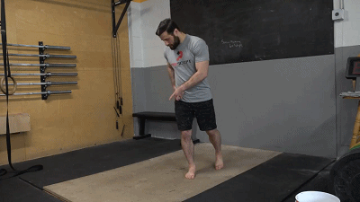 2. 壺鈴風車:單手將壺鈴舉過頭頂,肘關節朝向正前方,雙腳站距比肩略寬,彎腰並旋轉胸椎,另一隻手向下指向地面,同時保持負重的手臂始終指向天花板,然後回到起始位置,一側6-8次