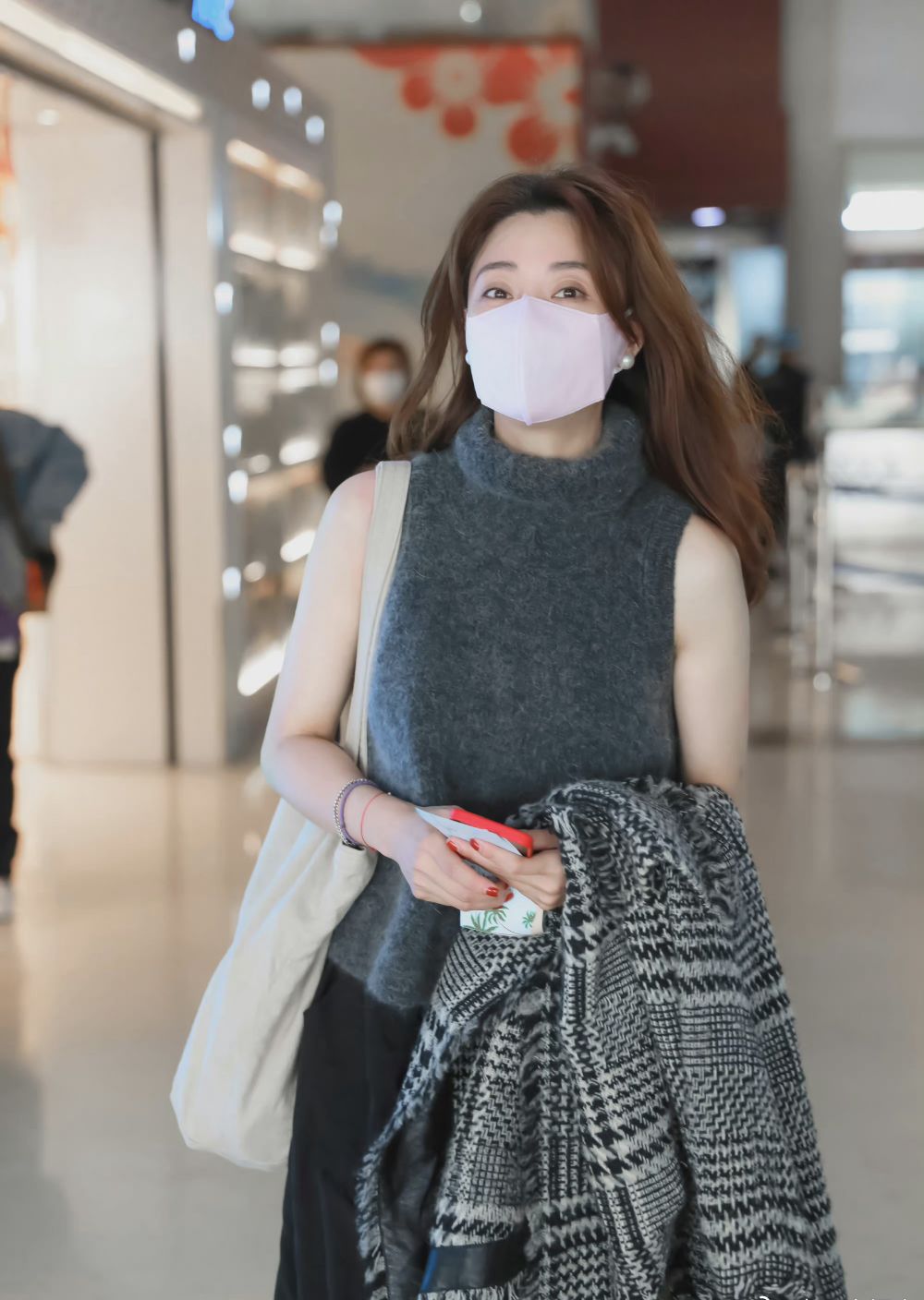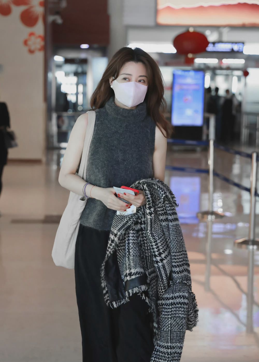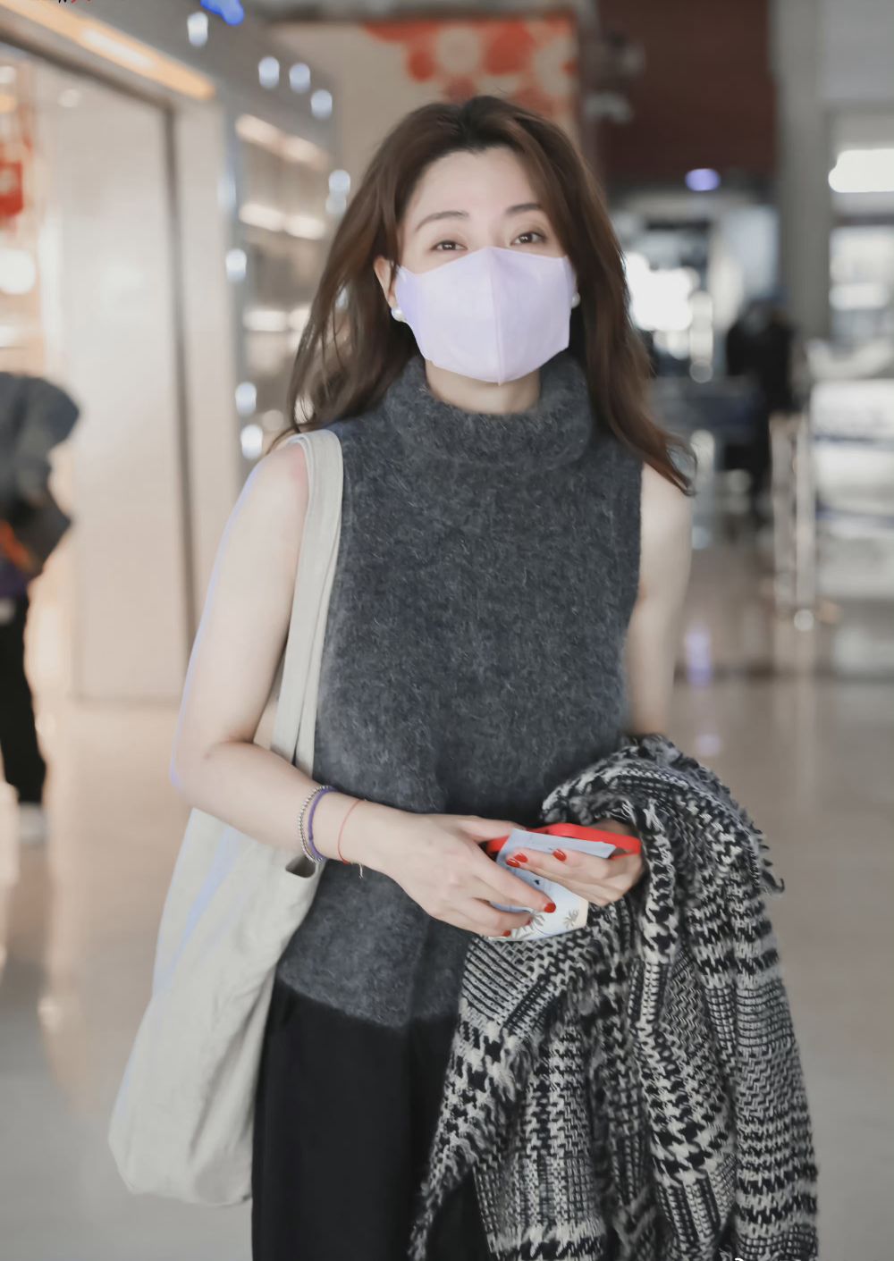 冬季強調包裹性的穿搭,主要是為了保證溫度,卻也少了露膚效果帶來的清涼感。情人節獨自走機場的殷桃,度假歸來依舊保持著沙灘度假的清涼效果,以露手臂款毛衣大方露膚,清涼又具女人味。換回披肩長髮還特意染了搭配剪了劉海,鏡頭抓拍充分激發了披肩長髮的氛圍美。