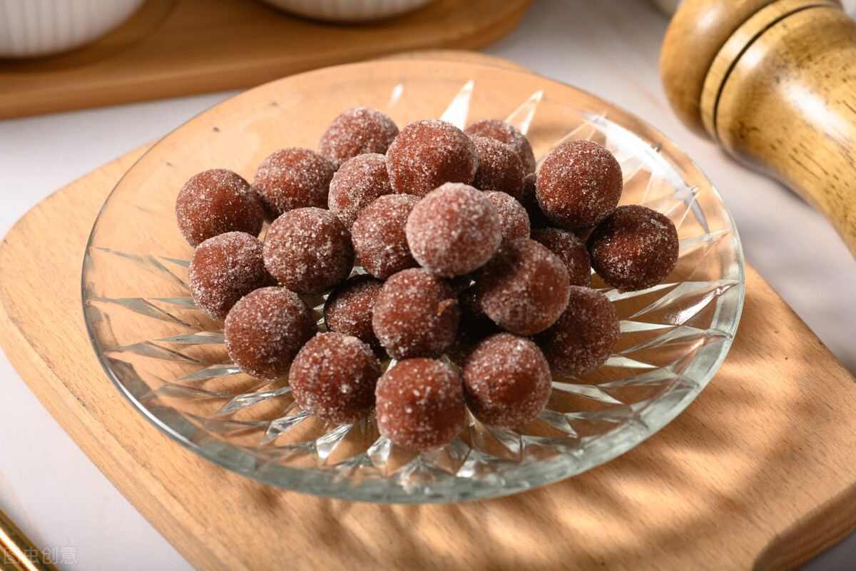 北方叫作“元宵”,是將糖餡放入笸籮中不斷滾搖,用類似滾雪球的方式,使糯米粉逐漸包裹在糖餡外製作而成;