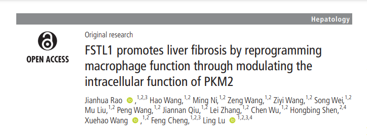 Rao J, Wang H, Ni M, et alFSTL1 promotes liver fibrosis by reprogramming macrophage function through modulating the intracellular function of PKM2Gut Published Online First: 09 February 2022. doi: 10.1136/gutjnl-2021-325150