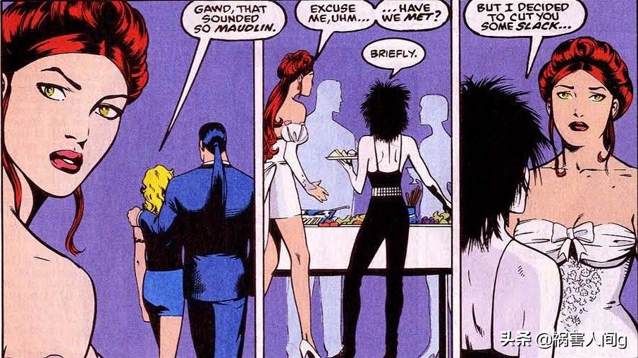 最讓人意料之外的是婚禮現場最後出現了一個黑色短髮的哥特女孩,她還送給新娘馬洛.錢德勒一把漂亮的梳子作為結婚禮物。這個哥特女孩自然就是DC的死亡化身-無盡死亡。儘管馬洛並不知道這個女孩是誰。