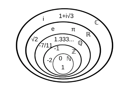 幾千年前,出於生產生活的需要,我們不僅需要表示“盈餘”,還要表示“虧空”,所以,人類跨域了正數和零的概念,負數產生了;同樣是在幾千年前,當我們需要描述把單位“1”分成若干份的時候,分數就產生了。分數可以化作有限小數或無限迴圈小數。還有一些數“不講道理”,它化作的小數既不終止,也不重複,而是無限不迴圈的,我們管它叫無理數。我們比較熟悉的無理數有圓周率、還有邊長為1的正方形對角線長度根號2 。可以看到,哪怕是最“不講道理”的無理數,在圓形、正方形這樣的日常生活場景中也能找到它們的身影。只要你承認圓形、正方形存在,就得承認無理數的存在。