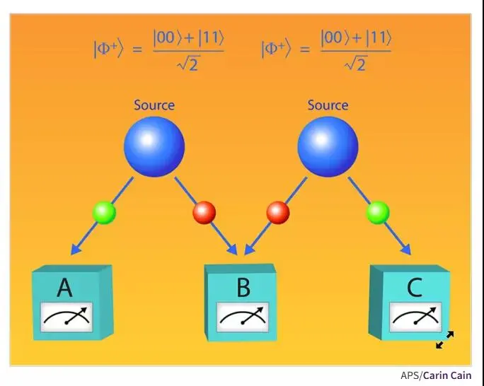 但是在新設計的貝爾測試中,兩個糾纏源相互獨立,參與三方各自獨立地進行本地的測量。當Bob做完整的貝爾測量、Alice和Clarie執行各自的測量時,三方關聯的統計結果如何?科學家們的理論計算表明,如果我們採取沒有虛數的所謂“實量子理論”,並且我們認同獨立子系統是以張量積的形式構成整個系統,那麼得到的預測結果將與複數模型下的預測不一致。這樣複數描述量子力學是否必要,就成為了一件可以驗證的事。