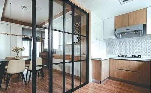 廚房使用推拉門節省空間,“一字型”“U型”佈局做飯更流暢