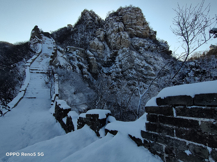 2月13日至14日的虎年初雪為懷柔區雁棲鎮箭扣長城披上了一層銀妝,壯麗的長城憑添了幾分妖嬈。 遠處,群山被皚皚白雪覆蓋,近處,樹木披上了白色的樹掛,一幅“千里冰封,萬里雪飄”的壯美景觀呈現眼前。 2月14日一大早,西柵子村長城保護員赫金悅來到了他管轄的長城點位,用手機記錄下了這一壯觀景象。 赫金悅攝