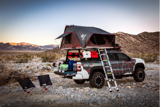 第三個概念是最引人注目的,日產將其稱為冒險計劃,基於FrontierCrewCabPro-4X打造,配備了大型5英寸升降套件,安裝有34英寸泥地輪胎。還擁有Yakima床架、YakimaLoadWarrior車頂籃、帳篷和Kicker高階音響系統,還安裝有碳纖維進氣管,以及美國地圖的貼花。