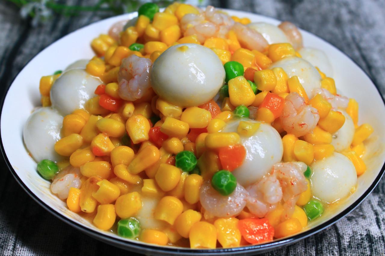 主要食材:湯圓 玉米粒 青豆 胡蘿蔔粒 大蝦