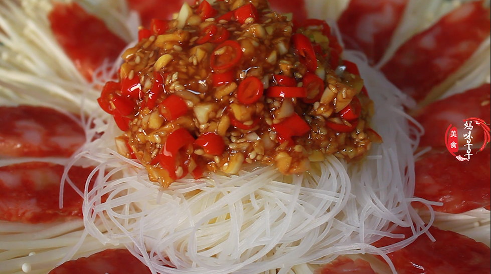 主要食材:金針菇 廣式香腸 蔥花 大蒜 小米椒