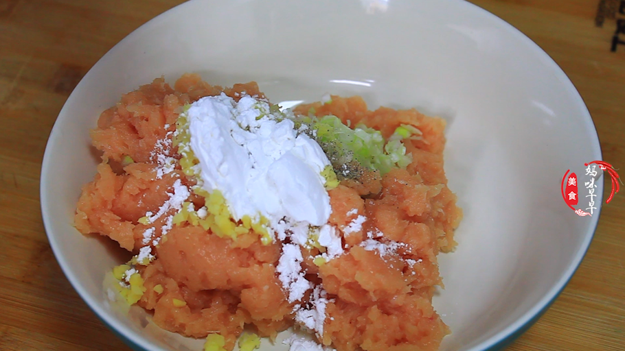 3,切好放入盆裡,加入3個鵪鶉蛋,一勺鹽,適量胡椒粉,一勺雞精,然後將雞蛋和調料攪拌均勻,接著加入適量的麵粉和澱粉攪拌均勻,分次加入,直到能團成丸子就行,不要太軟了。