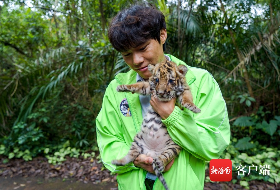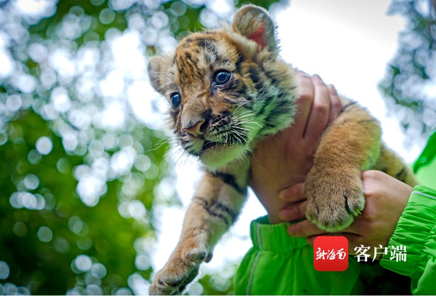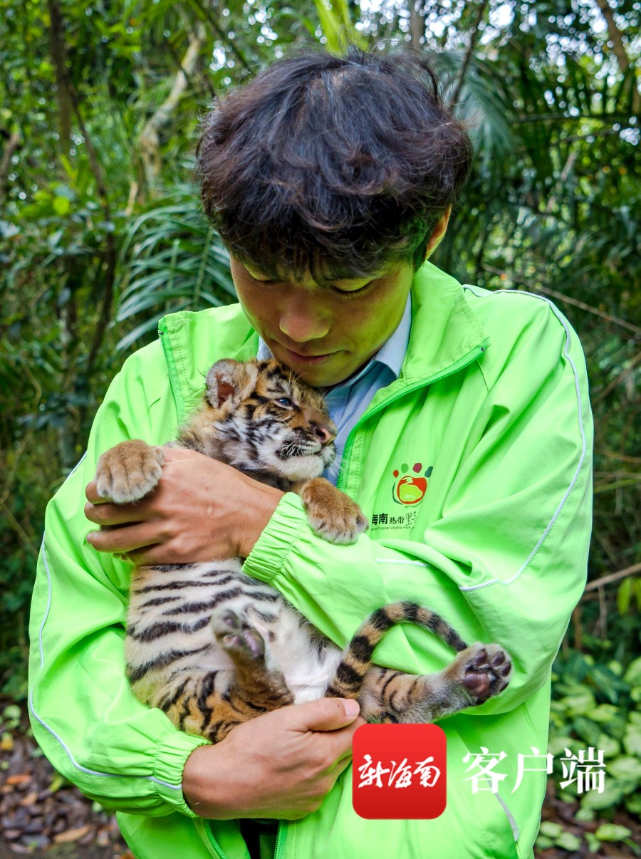 新海南客戶端、南海網、南國都市報2月15日訊息(記者 劉孫謀)2月15日,在海南熱帶野生動植物園裡,呆萌的小老虎初次在遊客面前亮相。本次與遊客見面的是海野萌虎“多多”的弟弟,於2022年元旦當天出生的小老虎“旦旦”(暫名)。目前2個多月大的小老虎十分呆萌可愛,連叫聲都是奶裡奶氣的,眼睛的瞳孔還沒有完全開完,剛睡醒的萌萌的樣子讓人喜愛,它喜歡保育員用手託著下巴,趴著看外面世界。