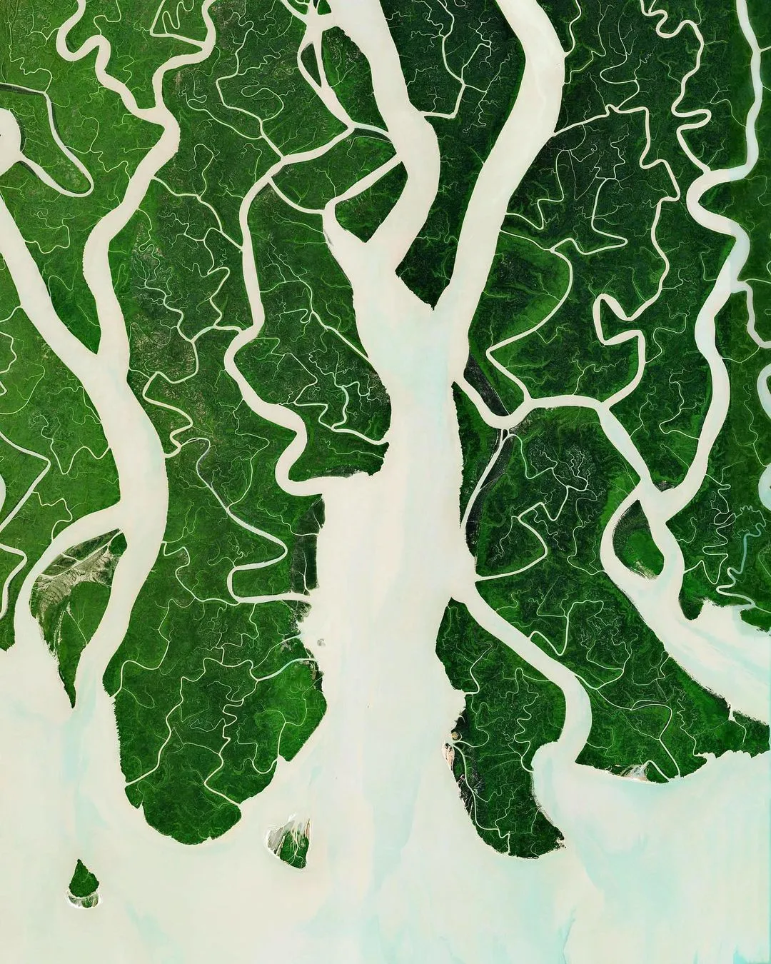 蘇達班國家位於恆河和雅魯藏布江的河口,形成了世界上最大的紅樹林之一,從太空看,它就像被蟲子吃掉的一片綠葉……