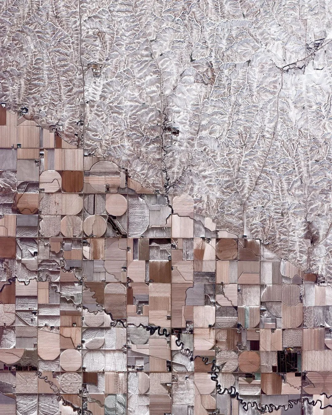 內布拉斯加州山脈的沙丘和農田平原交相輝映,人類和自然共同創造了一幅奇怪的畫面。
