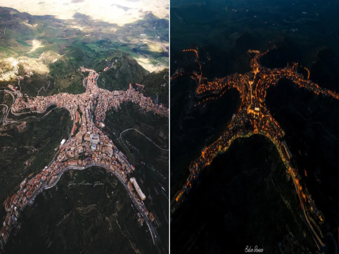 義大利西西里島的centurpe鎮以形狀而聞名,從上面看,它就像一個伸展四肢的巨人……