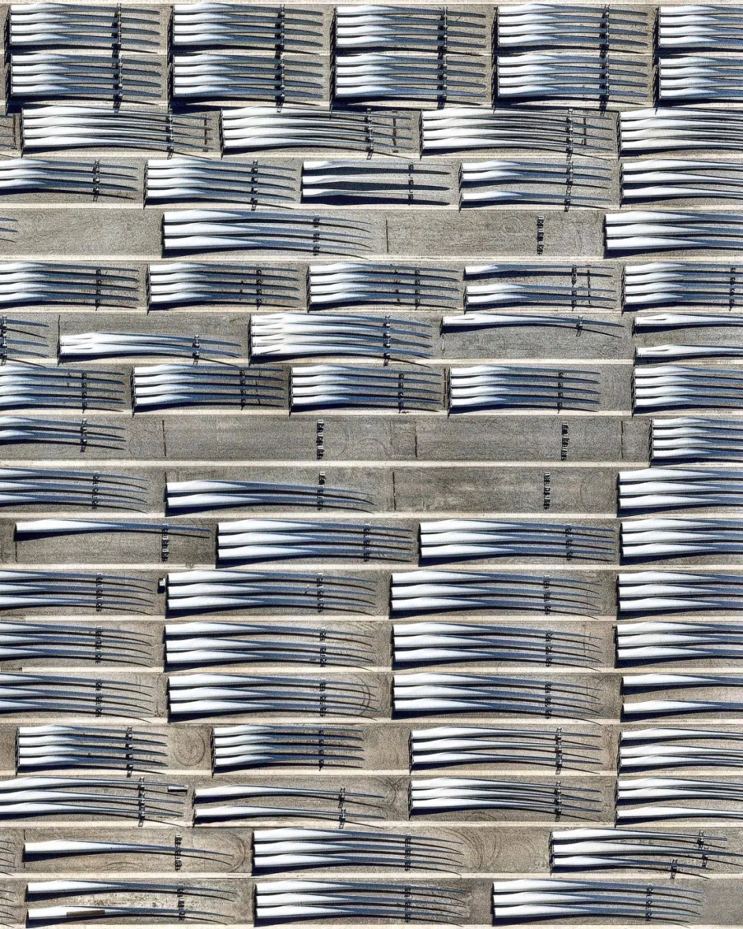 在阿肯色州小石城的一家生產風力渦輪機葉片的工廠,最長的葉片有107米長,每個葉片都需要分開它被運往風力發電場,然後在現場組裝。