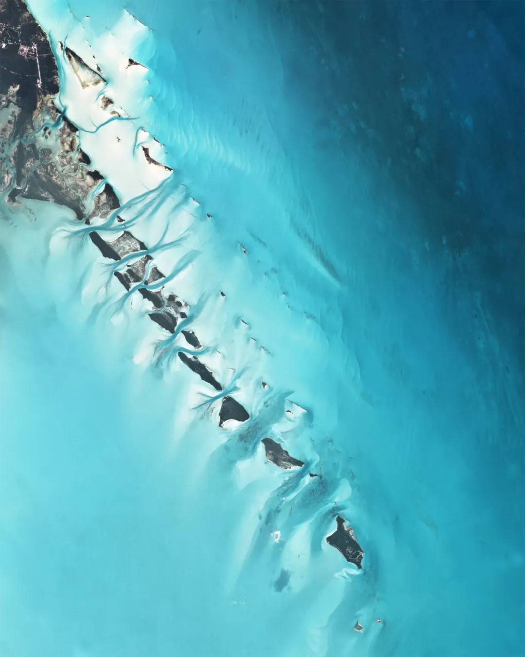 巴哈馬埃克蘇馬島的截斷珊瑚礁因其淺水深度和清澈的海水而呈現出迷人的淡藍色色調。