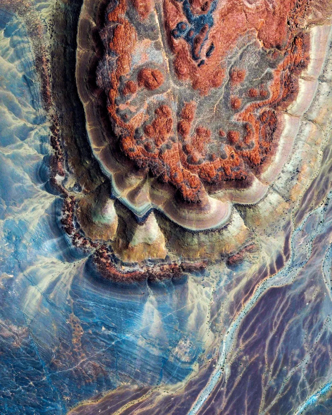 茅利塔尼亞的阿德拉爾高原,上層疊岩石的絢麗色彩和圖案令人歎為觀止,就像上帝無意中打翻了這裡的調色盤……