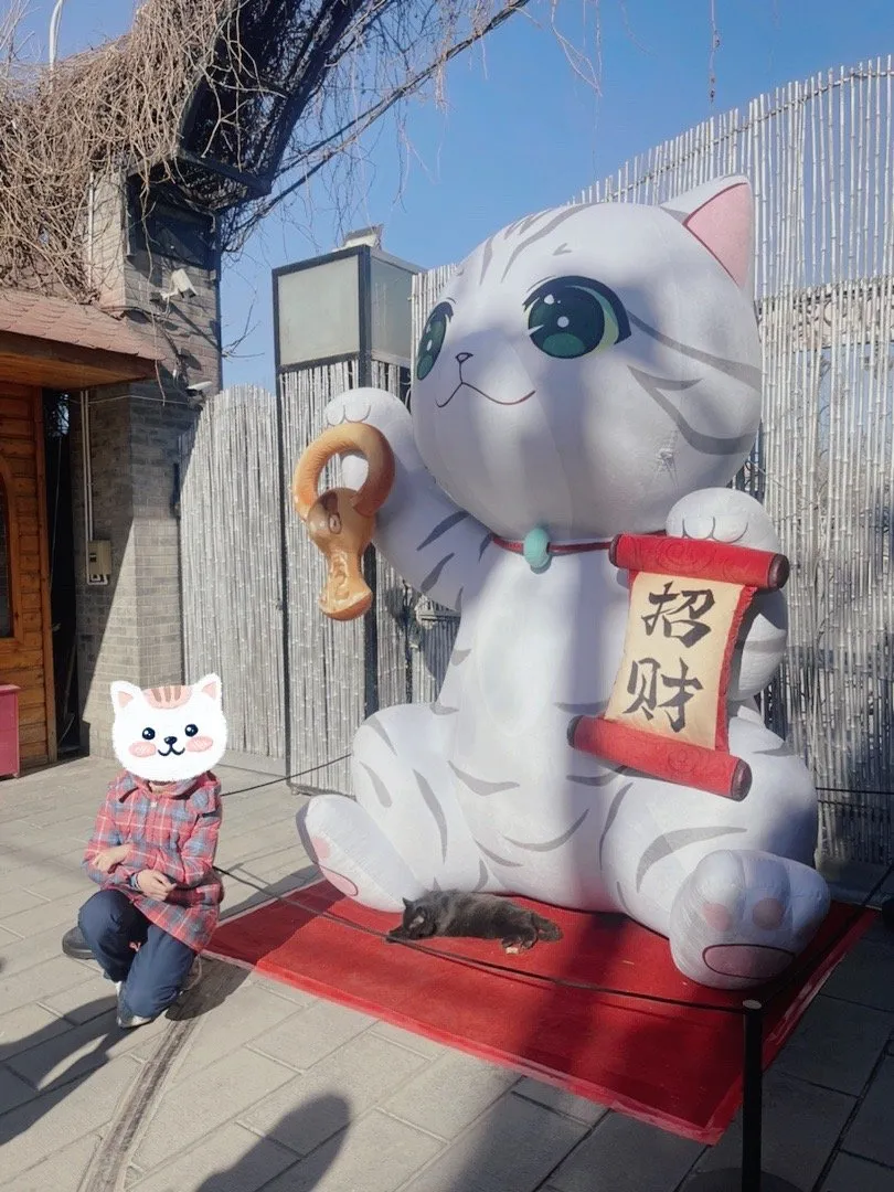 小二黑偵察了半天,也發現了流量密碼。他借粉絲打卡拍照的契機,把招財條條當成了自己的背景板: