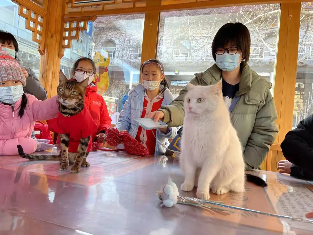 很多客人會在貓別墅外,隔著玻璃觀察小貓咪,一呆就是大半天。玳瑁姐妹花從中看到了機會,一左一右把守了大門:“看其他貓豆之前,先看看我倆唄!”