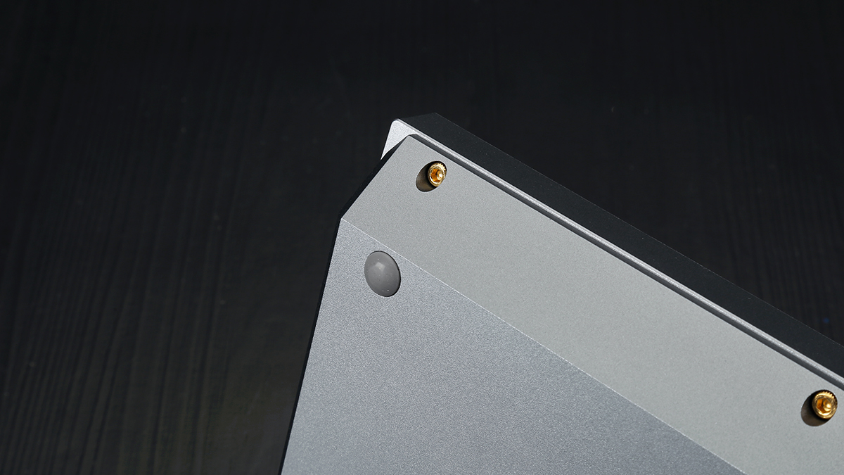 鋁合金材質的機身四角都採用了圓角處理,可以避免尖銳的金屬邊角對使用者造成傷害,日常挪動、調整位置也更加友好。全鋁材質機身用料也非常厚道,機身總重可達1600克以上,加厚的鋁合金底座也讓敲擊手感更加紮實穩定,能夠為使用者帶來更好的輸入體驗。