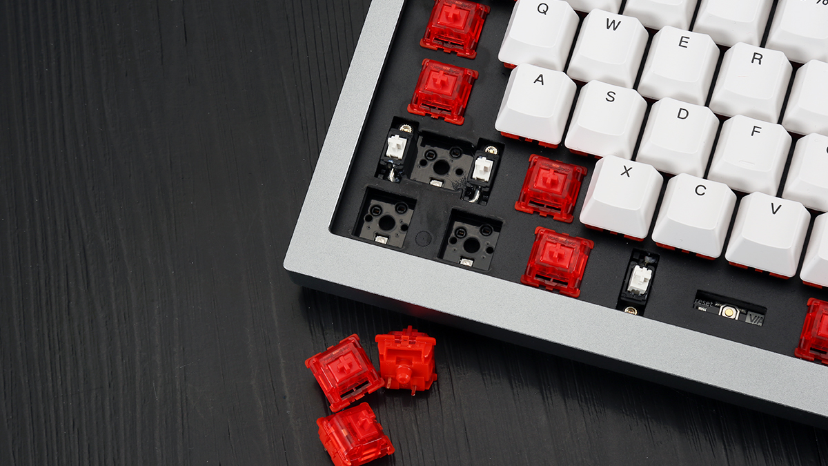 這款鍵盤支援全鍵位的軸體熱插拔方案,支援常見的三腳軸、五腳軸,對於市售的大部分軸體都有著不錯的兼容表現,使用者可以根據個人喜好來更換軸體,非常方便。配合夾心消音棉和底部消音棉,也能很好地過濾掉敲擊時產生的細碎雜音,為使用者帶來更好的使用體驗。