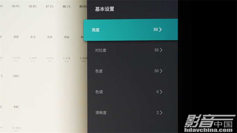 基礎影象設定功能,包括了亮度、對比度、色度、色調與清晰度這幾項基礎的調整專案
