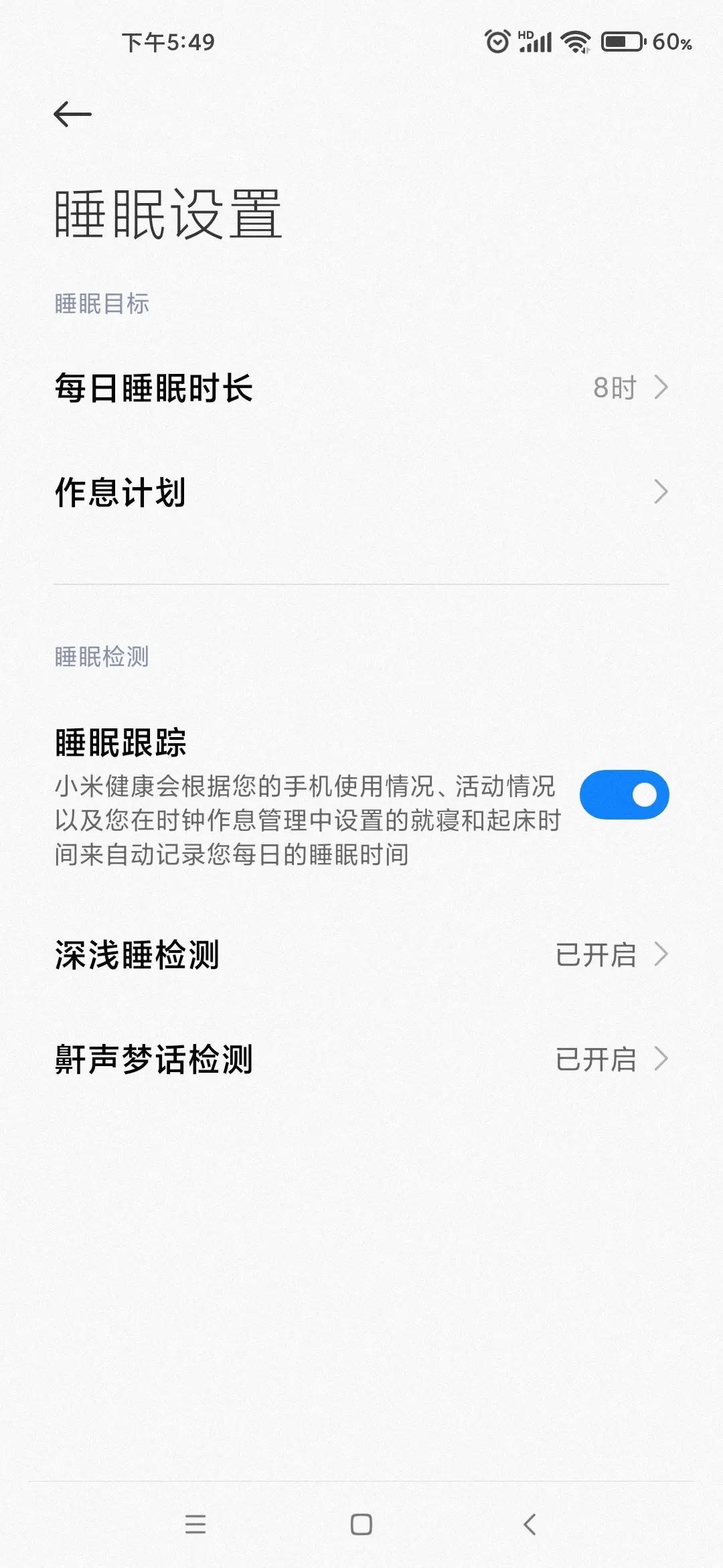 5.開啟深淺睡眠檢測和鼾聲夢話檢測。睡覺時把手機放在枕邊,就可以聽到自己的鼾聲了,當然前提是睡覺時打鼾。