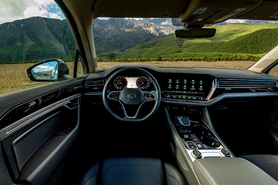 就拿底盤硬體來說,大眾途銳全系標配了空氣懸架,可以實現車身合共110mm上下調節,採用託森差速器的4motion四驅系統,擁有強大的越野能力和透過性。當然咯,為了匹配這套東西,我非常建議上搭載3.0T V6的動力版本,搭配8AT換擋節奏也體現出高階感。關鍵是它的價格還不算太貴,3.0TSI起售價在70出頭萬元左右,這個動力規格放在其它豪車陣營中妥妥地要百萬以上。
