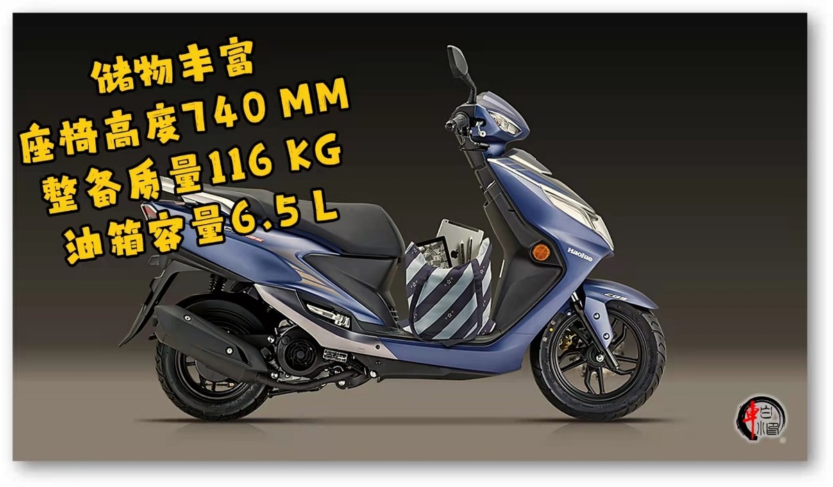 儀表下方有開放式前置物箱,USB充電介面以及防脫掛鉤,座桶下的空間也能容納一頂特別大的全盔,尾部也可選裝原廠尾箱,寬大的座椅設計,載兩人不是問題,座椅高度740mm,整備質量116kg,油箱容量6.5L,腳踏處空間也很充足,日常買菜接娃,上班代步足夠用。