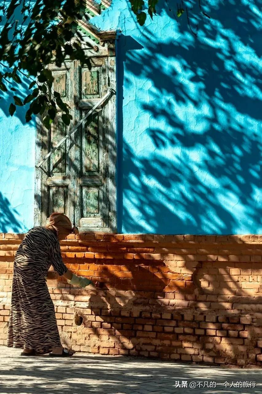 喀贊其,一個夢幻般的藍色小鎮,這裡的房屋建築,主色調大都是藍色,站在門前拍個照,不知道的,還以為到了舍夫沙萬呢。