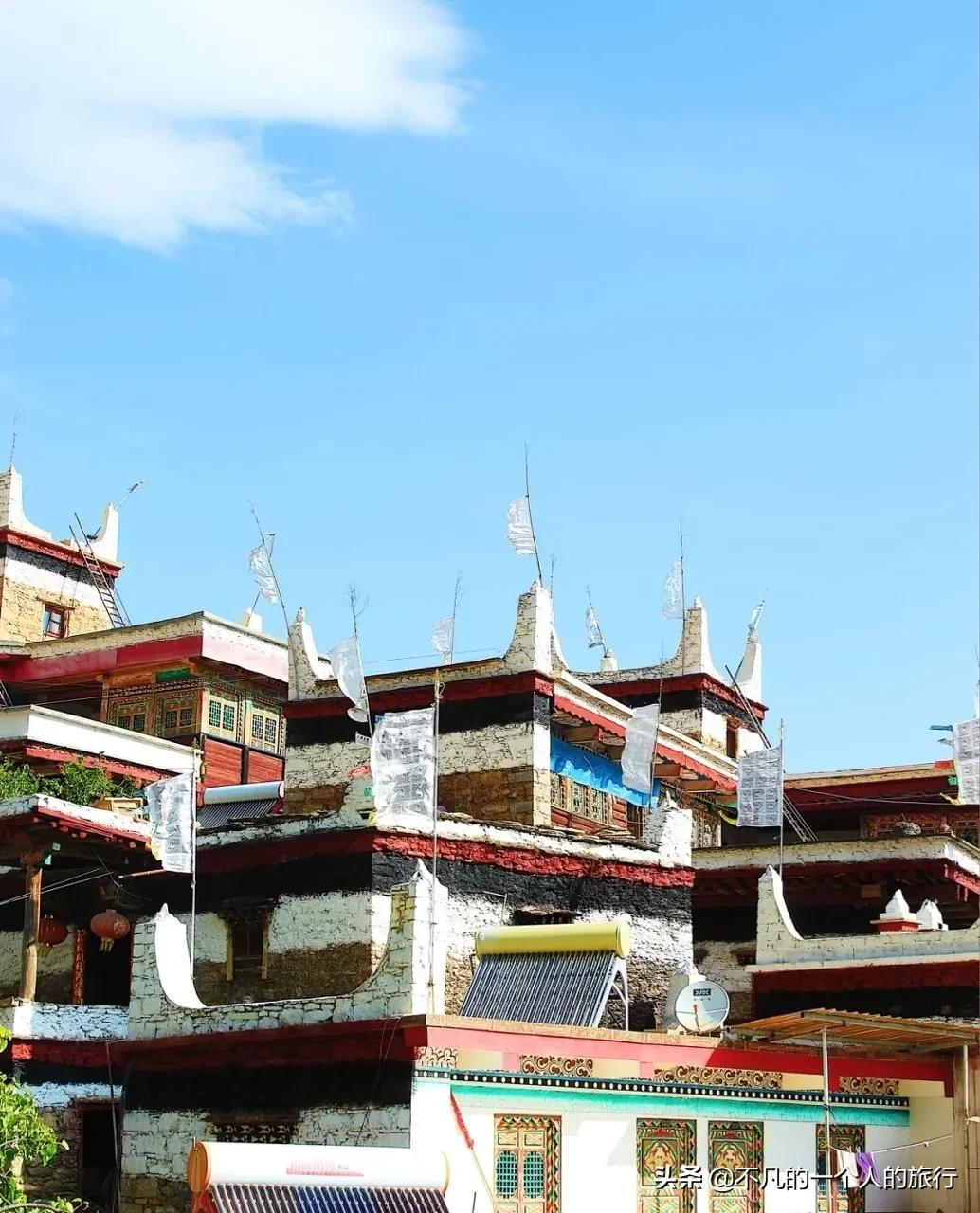 走進這裡,成百上千的傳統藏式民居,通身都被漆成了紅白相間,配合著高低錯落的組合還真像童話世界中城堡的樣子。