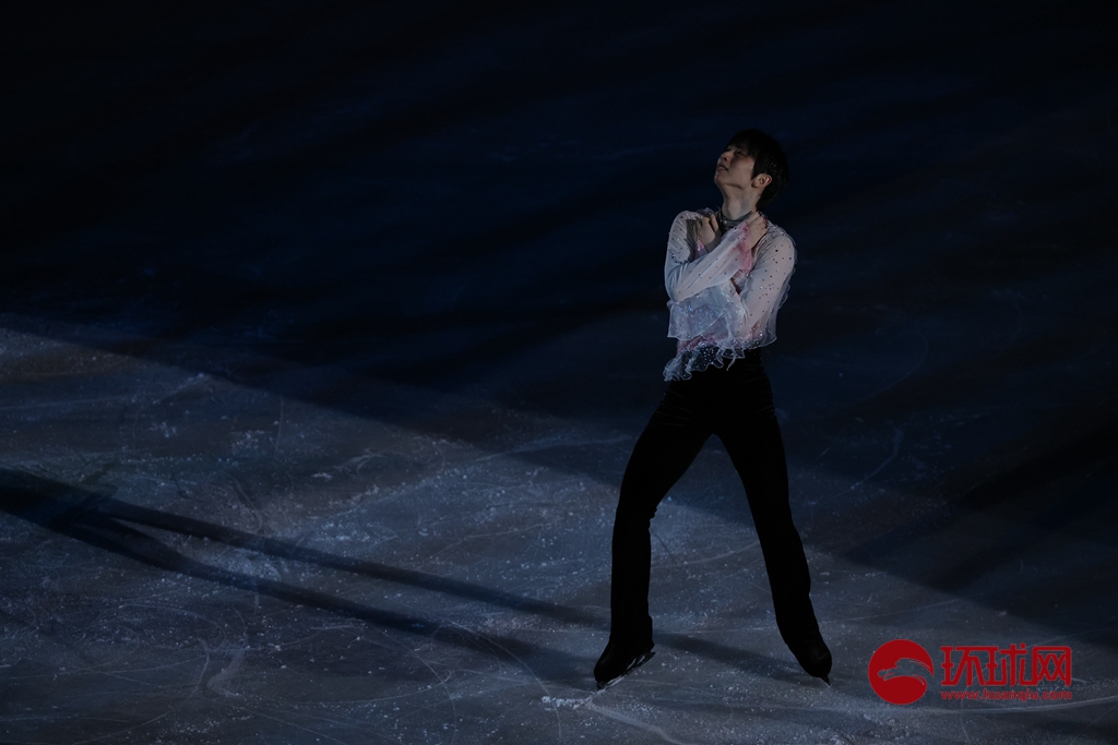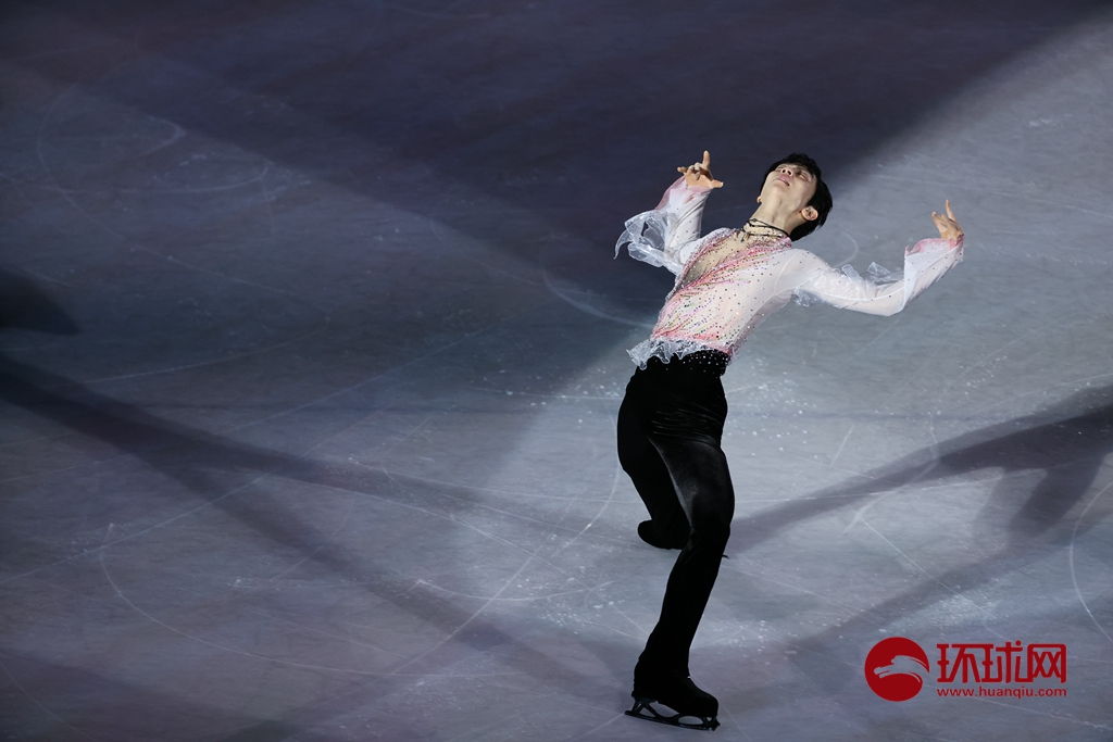 【環球時報-環球網報道 記者 李昊 張振】花滑表演賽,日本名將羽生結弦身穿一襲白色紗衣入場,引發現場一陣尖叫,他並沒有選擇挑戰更多高難度動作,但依舊讓現場不少女觀眾激動不已。羽生結弦演繹《春天來了》,表演末段,羽生滑行中親吻這塊他熱愛的冰面,令人動容。