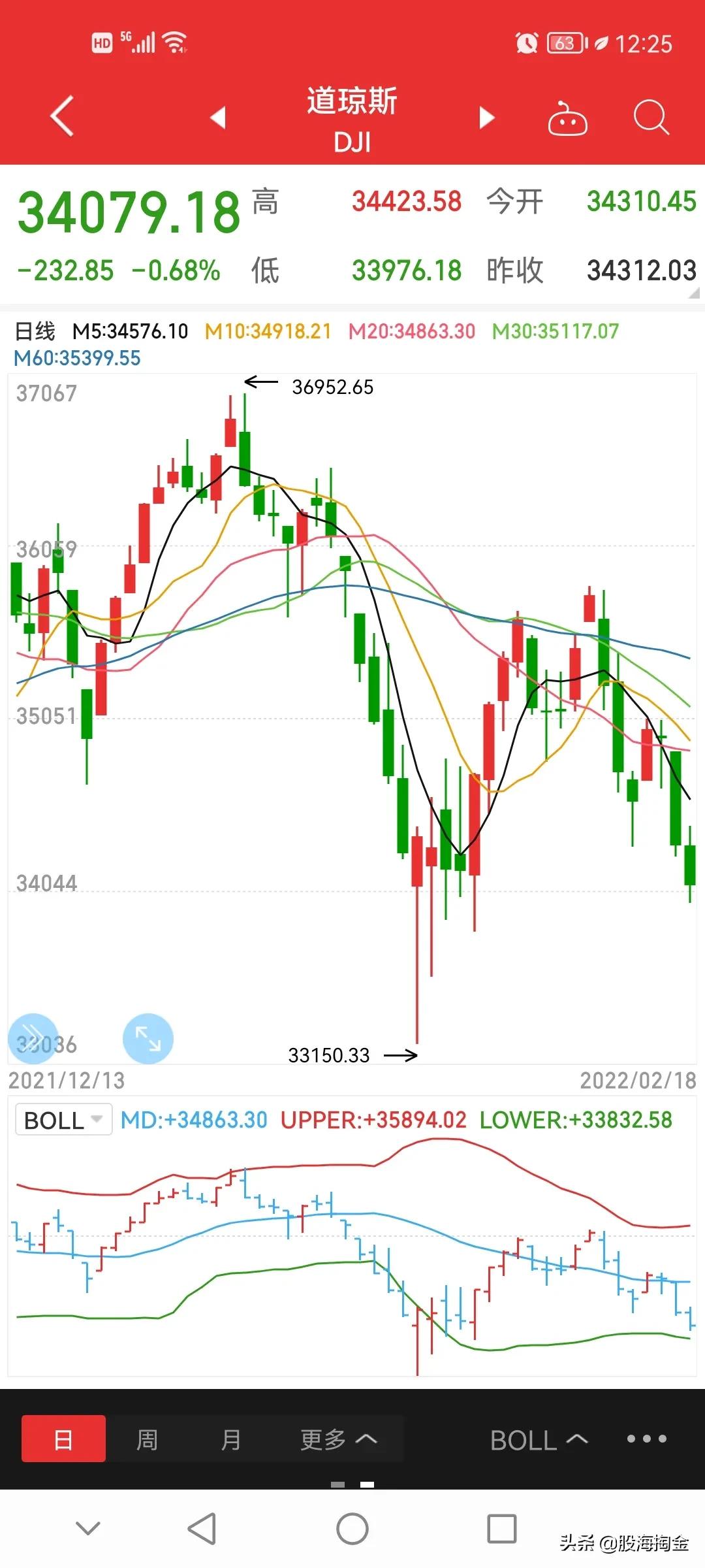 道瓊斯指數本週五收陰線,跌幅為0.68%,從這根日K線來看未見止跌跡象,下週一道瓊斯指數還會下探,勢必影響A走勢。