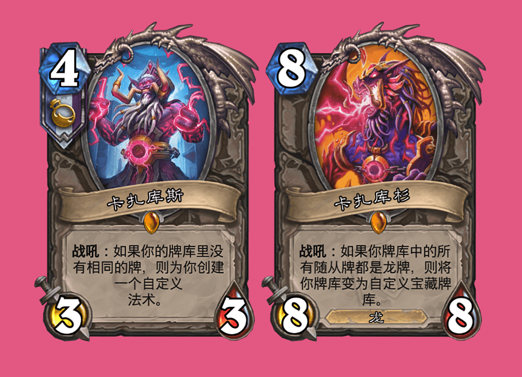 卡扎庫斯是龍早在加基森宣傳片裡就有透露,卡牌背景趣文裡的“暗金教鄭重承諾:教主卡扎庫斯並非巨龍”更是此地無銀三百兩。只是沒想到他居然是一條黑龍,之前很多網友猜測的是暮光龍,還與黑龍公主奧妮克希亞關係親密。