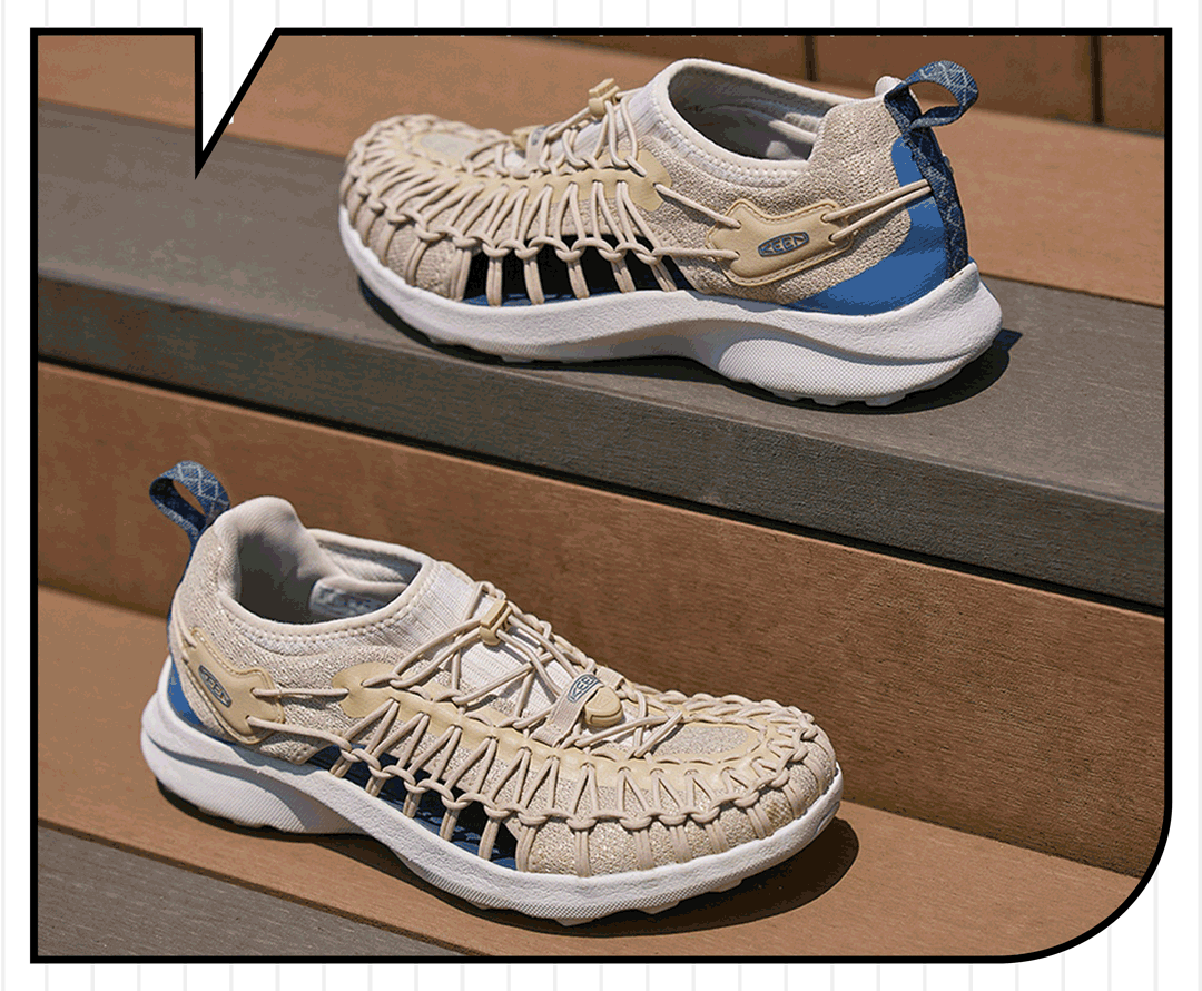 在品牌理念中一向強調保護海洋環境的 KEEN,於去年的世界水日發售了這雙與環保品牌 REBIRTH PROJECT 合作的 UNEEK SNK。首先該鞋原型中的抽繩與網狀鞋面就採用回收塑膠瓶或其它的 PET 材質垃圾製成。其次在配色上將海灘作為主題,鞋面以大地色呈現,並在後跟點綴了代表海洋的湛藍。另外這雙合作鞋款還附贈了以廢棄漁網為原料的吾妻袋,不得不說真的很有心。(據資料顯示,在危害太平洋生態的海洋廢棄物中漁網竟然佔了 46% 呢!——資料來自國家地理雜誌官網)