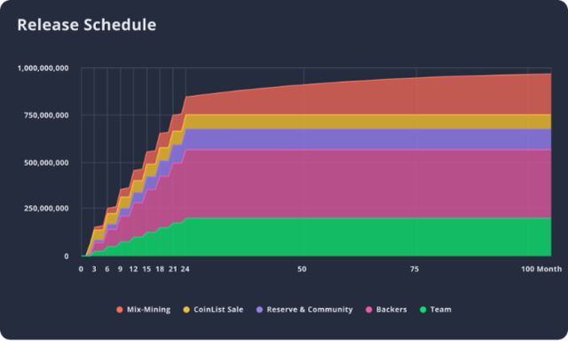 NYM 的總供應量為 1,000,000,000 (1B) 個代幣。請在下面找到代幣分配和釋出時間表。