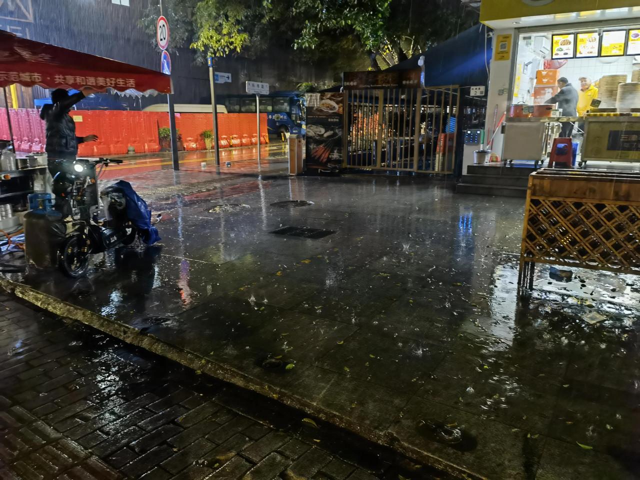 可是今天的這個選擇,和往日運動不同,路面不平,處處水坑,我眼睛盯著路面,一步一步的探索的走,就這樣我走+跑二圈,雨也是越來越大,水也越來越多,鞋子和襪子也溼了,今天我在這個時間段運動,也盡最大努力在時間段運動,回家;