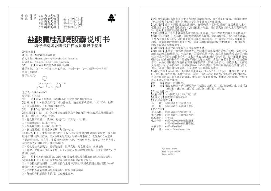 鹽酸氟桂利嗪膠囊藥監局批准情況:2020年獲得再註冊批件