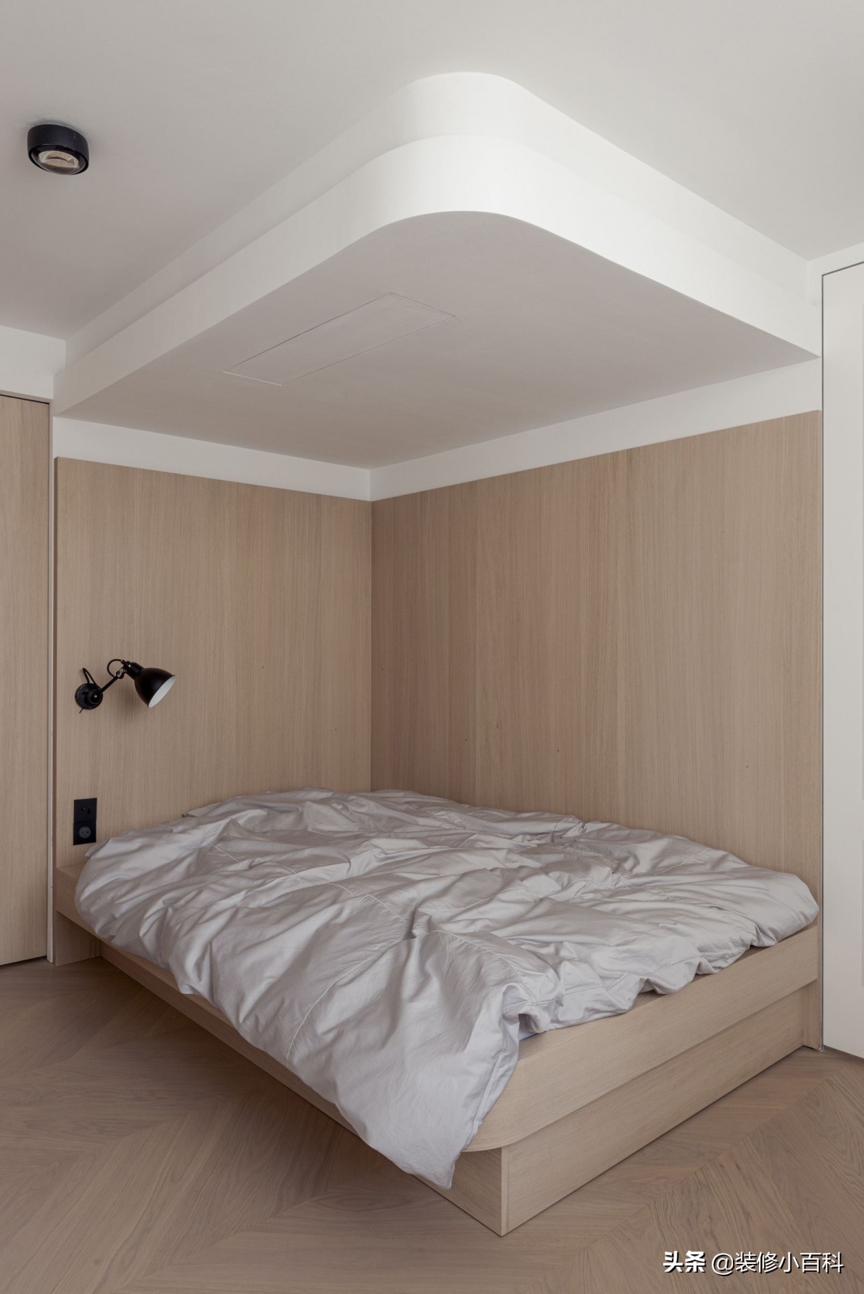次臥選擇了簡單地添置了一張床,一個簡易的壁燈。