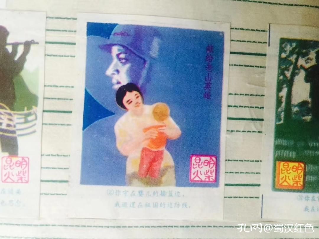 1979年2月17日對越自衛反擊戰開始。1984年4月28日老山收復戰開始。特翻閱所藏獻給老山英雄的火花:火花即火柴盒上的貼畫。記得16年前的一天下班回家,趁愛人接小孩到體育館訓練之空隙,一人在家整理所藏火花,發現了昆明火柴廠印製的一組六枚“獻給老山英雄”火花。看著火花所印製內容及圖案,當時筆者思緒立即回到當年老山英雄事蹟:1984年4月在收復被越南軍隊侵佔的領土老山的戰鬥中,老山英雄們發揚不怕犧牲、不怕疲勞和連續作戰的戰鬥作風,英勇作戰,為中國邊防部隊攻佔老山主峰創造了有利條件。這六枚火花,圖案精美,內容感人,內容為歌曲“十五的月亮”。當時筆者就在網上查詢下,七、八年前一套六枚“獻給老山英雄”火花,售價幾十元,頗為珍稀。此套火花反映了老山戰役那段特殊的歷史,個人不時進行翻閱,藉以緬懷老山英烈。