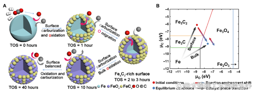 催化劑結構演變示意圖和理論計算的Fe物種相圖