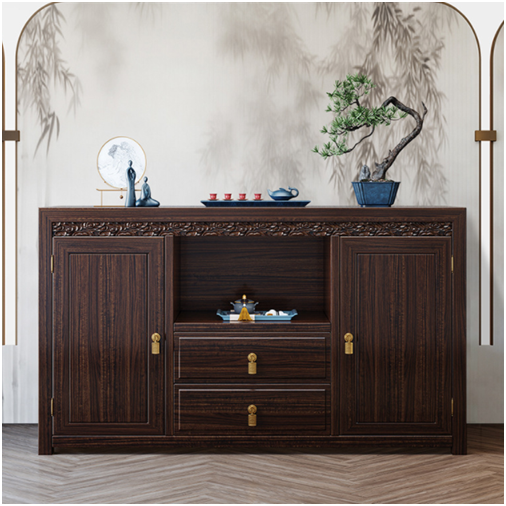 很多人覺得餐邊櫃的實用性很差,但是餐邊櫃的功能有很多,同事餐邊櫃的美觀化尤為重要,新中式在當今已成為主流,在用餐環境下餐邊櫃能成為餐廳中最靚麗的景觀。