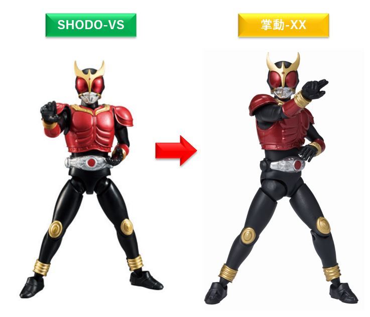假面騎士BLACK的塗裝分色有所改變,掌動XX系列的手肘關節及腹部與SHODO-X不一樣,可動性也得到提升。