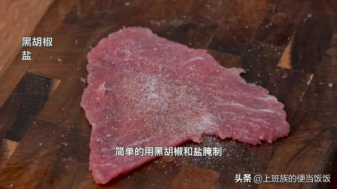 1斤半里脊肉切成大一點的片,用錘子錘成2倍大小的薄片。