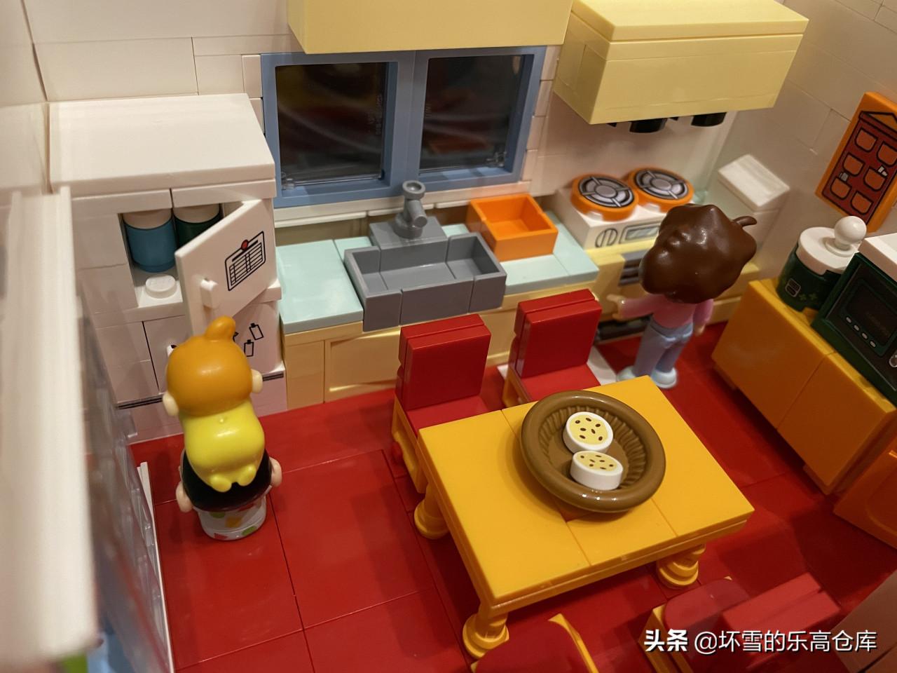 進到院子裡,能看到還原了車庫的位置和雨棚細節,但套裝本身並沒有多個百十塊零件搭出一個小汽車停在這裡,削微有點遺憾。